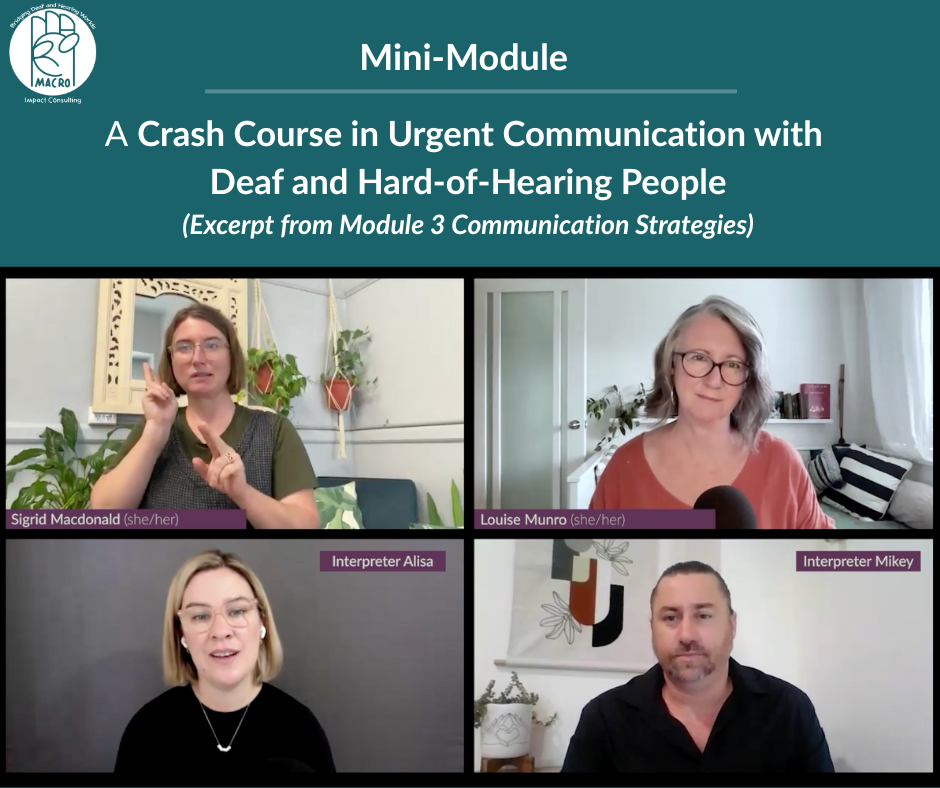 This 40-minute module is a crash course for urgently communicating with Deaf or hard-of-hearing people. This module will be particularly useful for people working in health and emergency services.